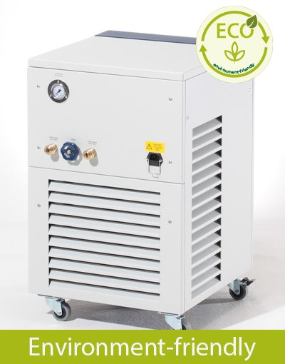 A temperatura da água de refrigeração é totalmente ajustável e exibida no visor digital O-LED. A saída é regulada por um aquecedor de compensação controlado por microprocessador, o que resulta em uma alta constância da temperatura da água de entrada (0,1 K).