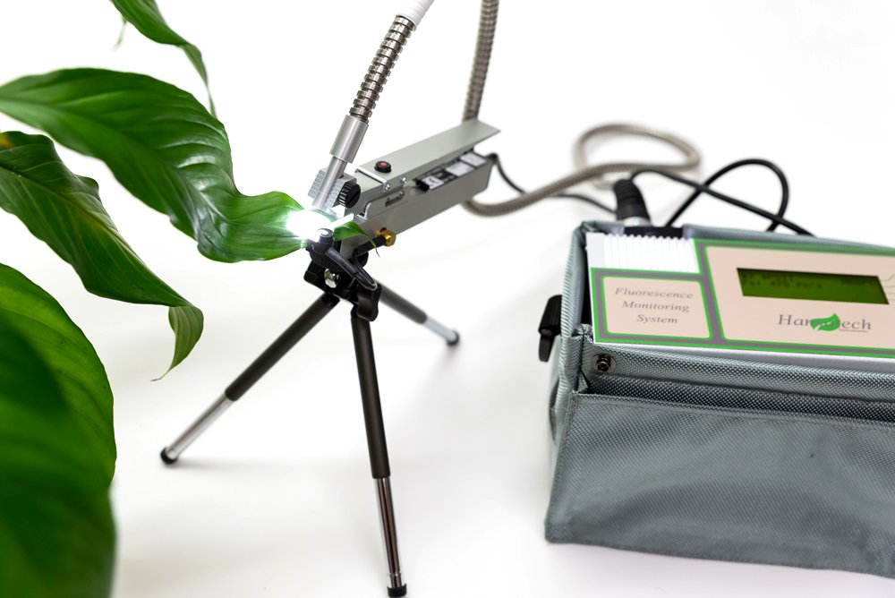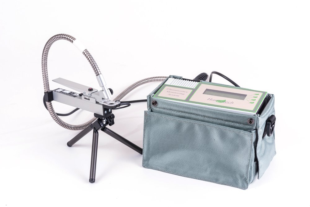 O fluorímetro de clorofila FMS 2+ consiste em uma unidade de controle que abriga toda a eletrônica, óptica e fontes de luz necessárias para derivar os parâmetros mais comuns de fluorescência da clorofila. Esses cabos são ligados opticamente à amostra por um cabo de fibra óptica estatisticamente randomizado que está posicionado no clipe de folhas FMS/PTL PAR/temperatura. O cabo de fibra óptica também é adequado para inserção em uma variedade de recipientes de amostras, como câmaras de eletrodos de oxigênio, câmaras antigas de análise de gases, placas de Petri e placas de microtítulo.