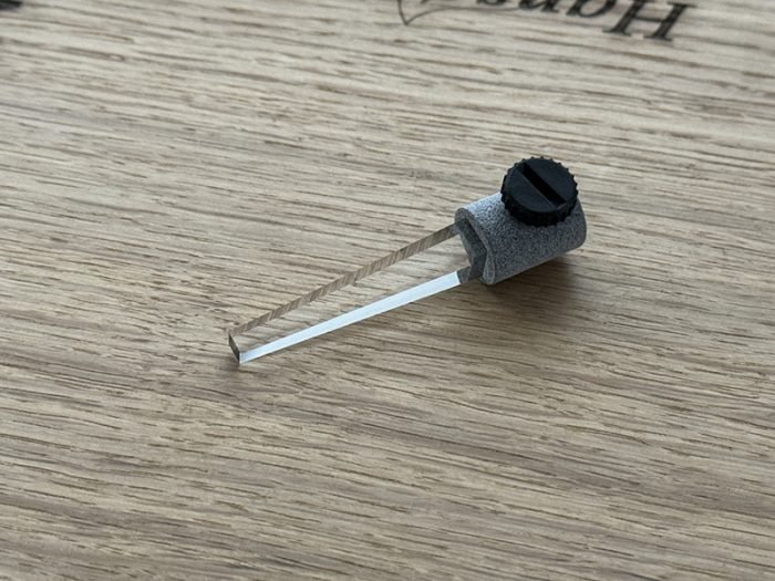 Em uma extremidade do braço há uma rosca macho de 9,5mm que se conecta à rosca fêmea de 9,5mm na parte traseira da braçadeira. Na outra extremidade, o braço é equipado com um adaptador que permite que o cabo de fibra óptica FMS-300 seja mantido firmemente no lugar durante as medições.