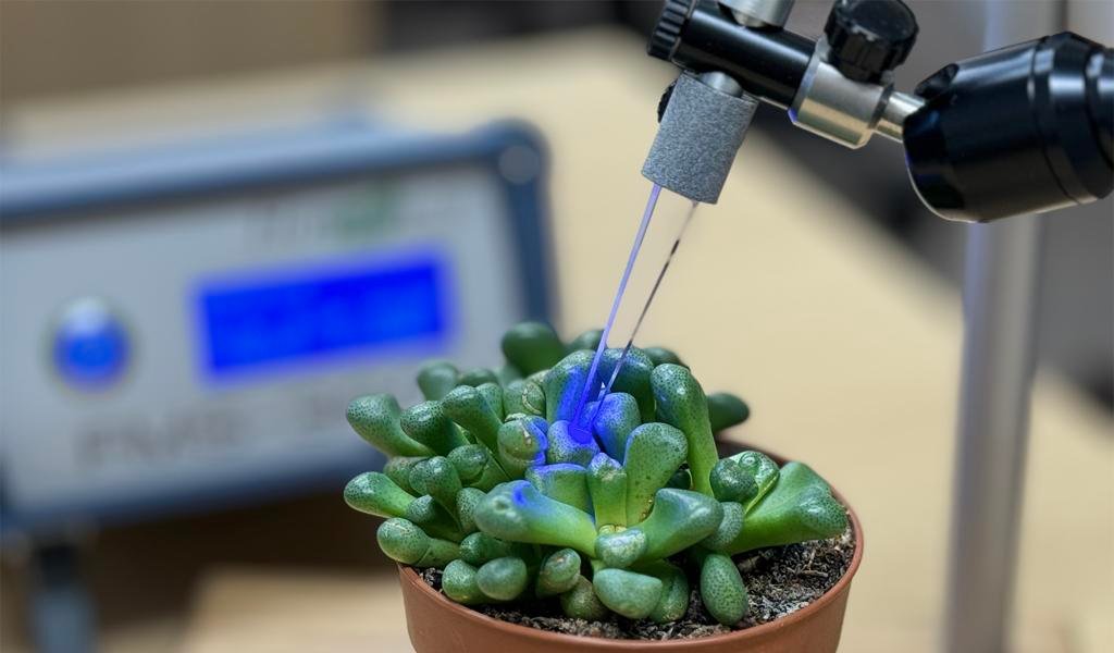 A frequência de amostragem durante cinética lenta é de 10 Hz (1 amostra a cada 100 ms), que aumenta para 100 kHz (1 amostra a cada 10 μs) durante a captura de fluorescência rápida. Essa taxa de amostragem rápida é essencial para capturar com precisão as fases iniciais do Efeito Kautsky (OJIP), que fornece informações sobre o estado redox dos aceitadores primários de elétrons do PSII.