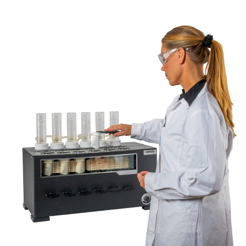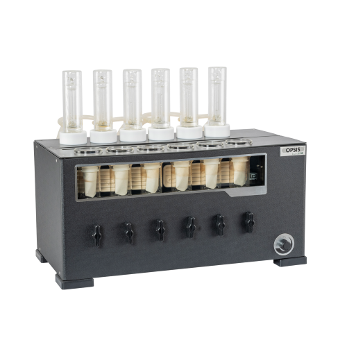• Insira até seis amostras dentro da unidade HydROC. Use o mesmo porta-filtro do OPSIS LiquidLINE  na unidade de extração SoxROC. A separação de cada amostra elimina qualquer risco de contaminação